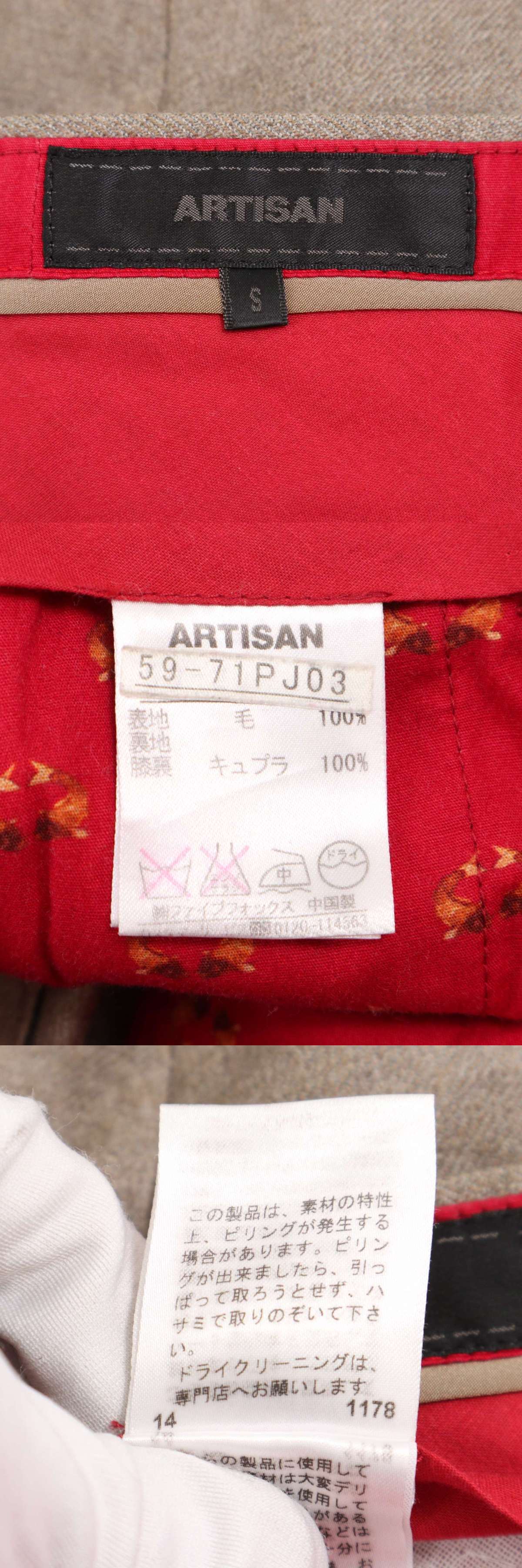 ARTISAN アルチザン コムサ系最高峰★ 秋冬 ウール100% ツイード テーパード スラックス パンツ Sz.S メンズ 收藏