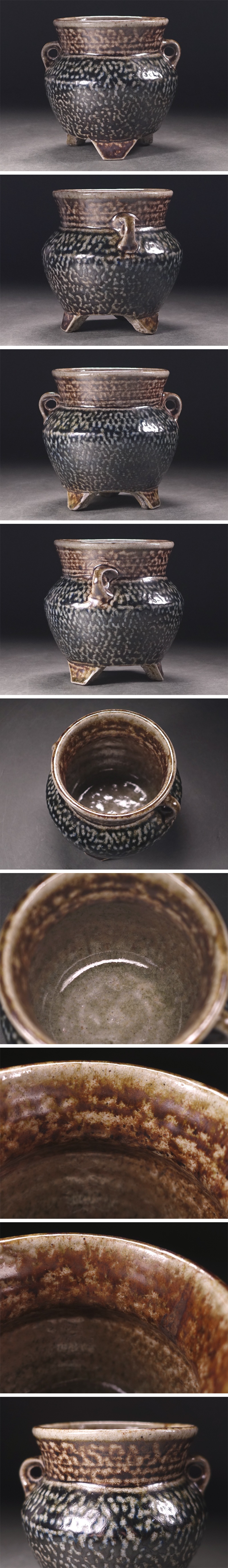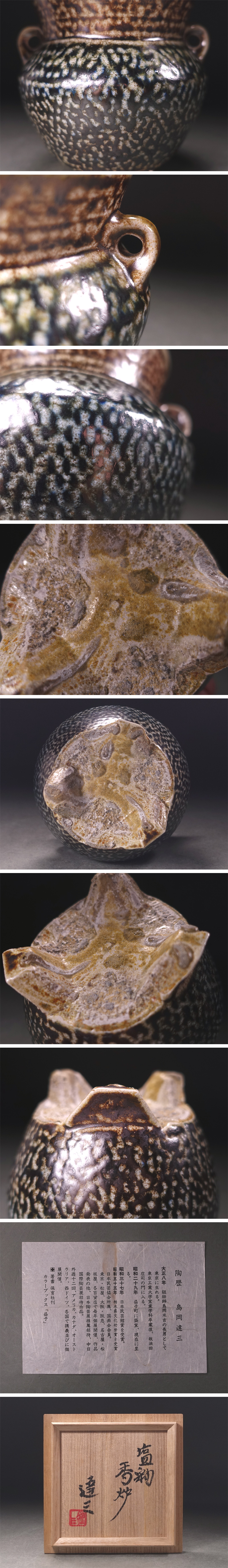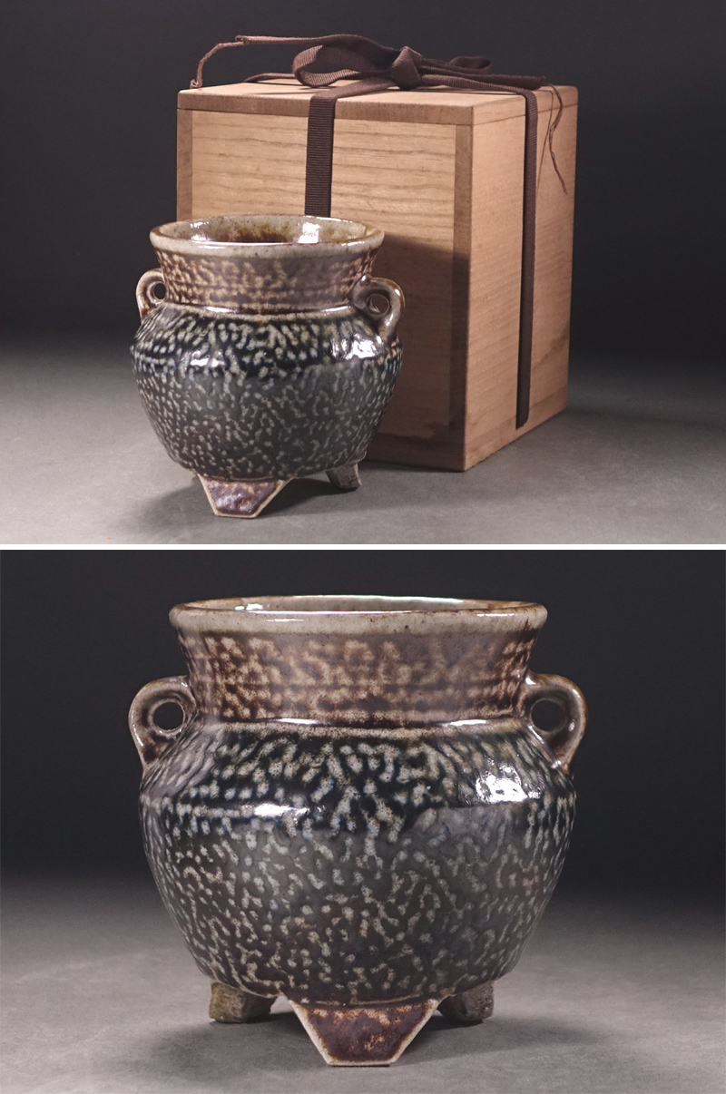∇花∇人間国宝【島岡達三】作 明瞭な発色の塩釉香炉 共箱付 上手塩釉作品 收藏