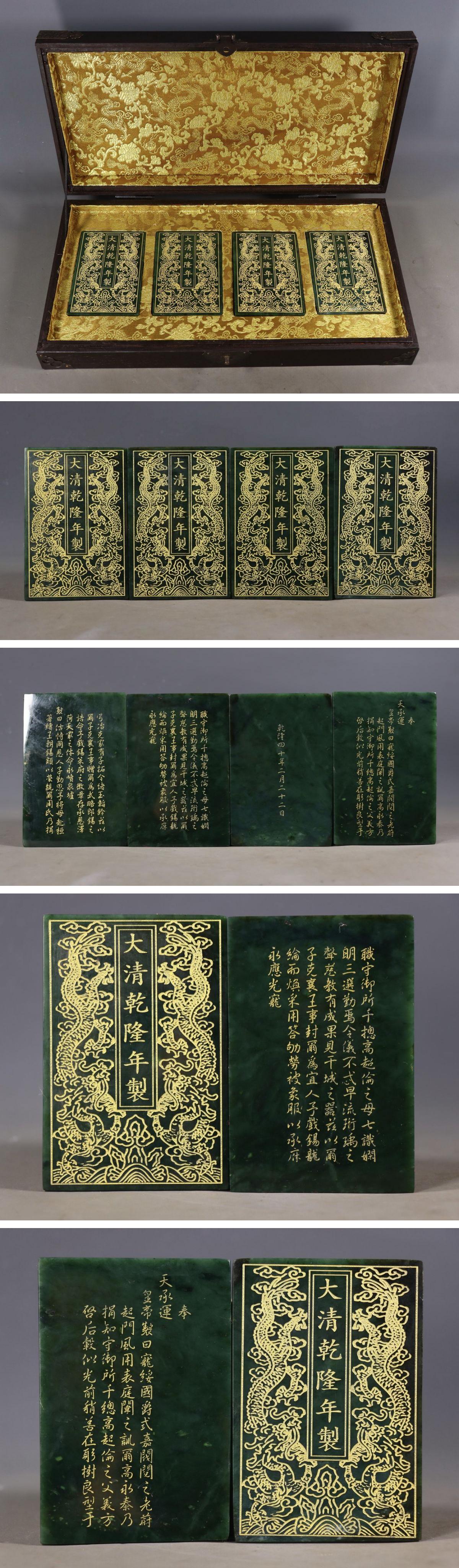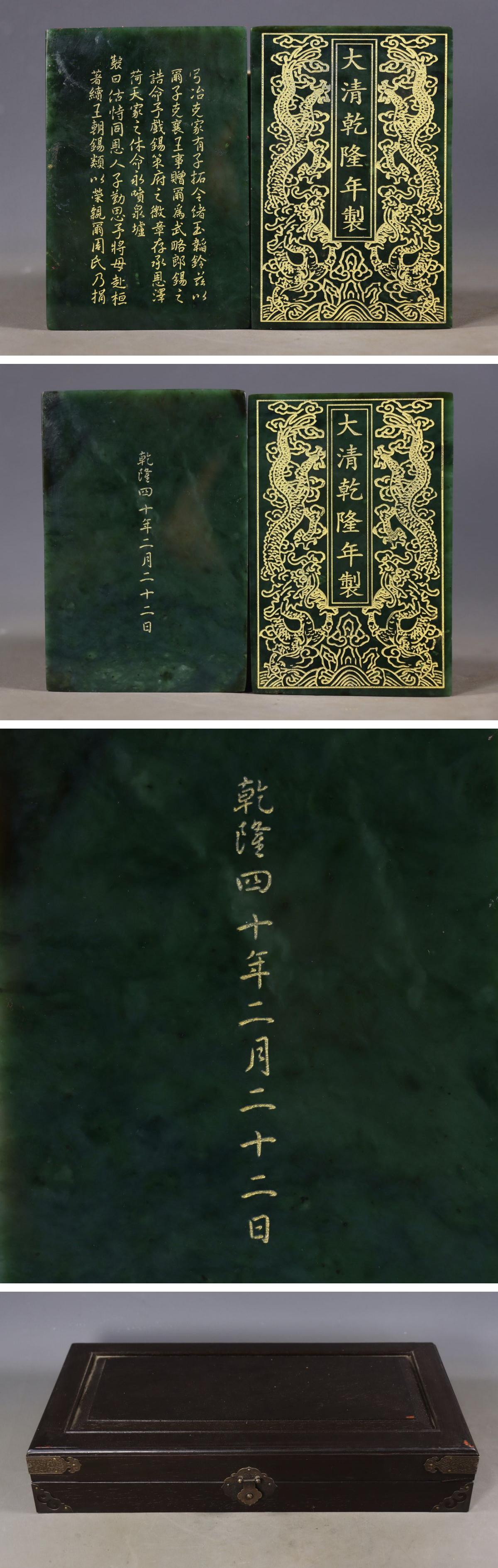 【清】関西某オークション購入 中国・清時代 天然碧玉 乾隆年刻 御旨玉冊 共箱 極細工 古置物 古擺件 中国古美術7L12-ZQ15 收藏