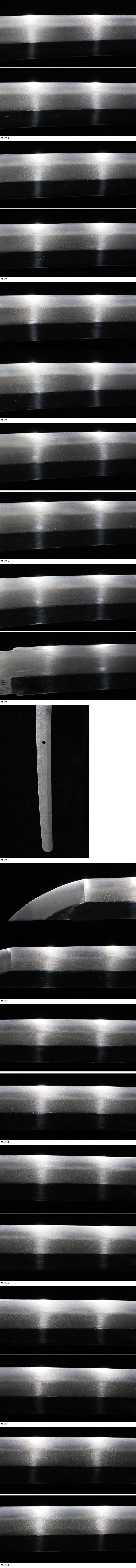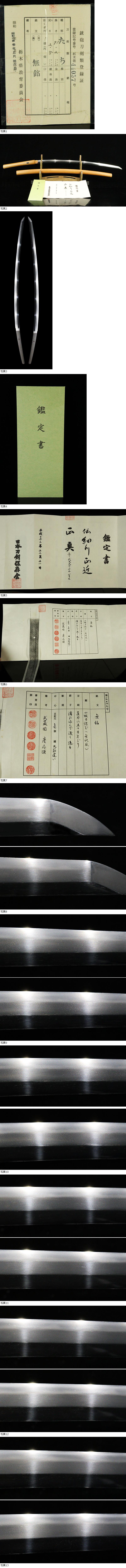 | ■刀剣のサイズ表示について 元幅・・・焼出し付近を測定しております 先幅・・・横手筋付近を測定しております 元重ね・・・焼出し付近の厚みを測定しております 先重ね・・・横手付近の厚みを測定しております (多少の誤差はご容赦ねがいます) ■銃砲類のサイズ表示について 全長・・・銃身先から台木尻までを測定しております 銃身・・・台木を除いて金属部分を測定しております (多少の誤差はご容赦ねがいます) 当社が出品する刀剣類は、入手した時の状態のまま出品しております。 ハバキ、小道具等も当社で調整したり付け替えたりはしておりませんので、合わせではないかというクレームは一切受け付けません。 刀身の疵も隠すことなく載せておりますので写真をよくご覧になってご入札ください。 疵に関して、説明がない等のクレームは一切受け付けません。 写真ではわかりにくい部分は質問欄やお電話でお問い合わせください。 但し、説明欄に表記のない刃切れに関してのみ返品やご相談に応じます。 ※ご落札しご購入されお手元に届いてから20日以内に 登録証に記載されている各都道府県の教育委員会にご連絡し 登録証の所有者変更を必ず行ってください | |||