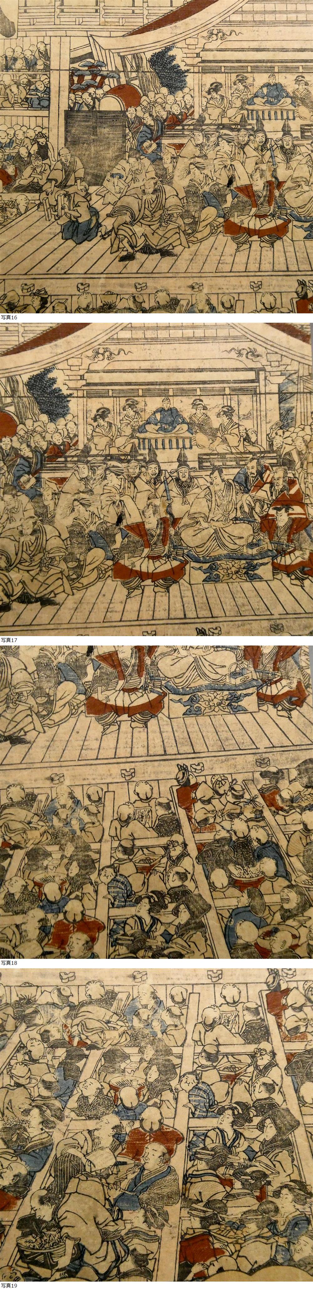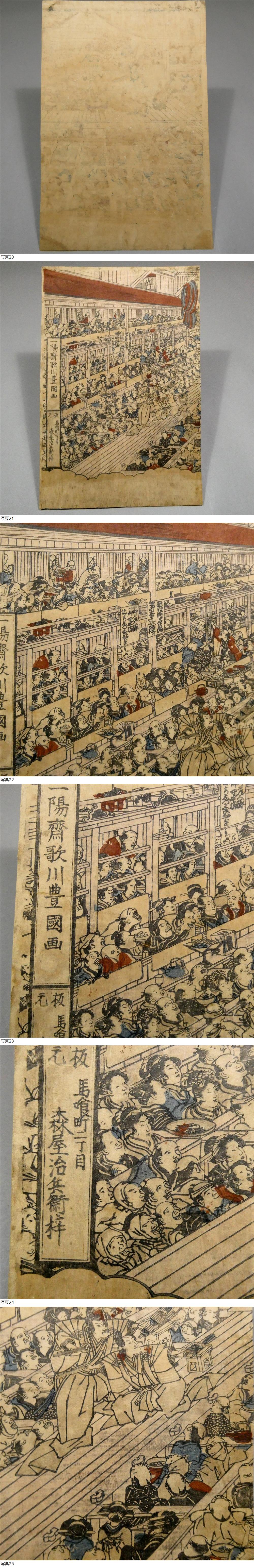 初代 歌川豊国◆中村座内外の図 3枚続揃い◆江戸時代 木版浮世絵◆大入! 正月 曽我狂言対面の場◆客は飲み食いも忙しく■歌麿 北斎 広重35 收藏