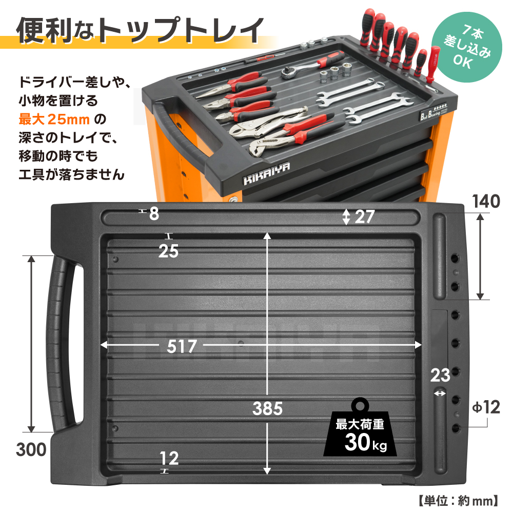 | 材質 | 本体:スチール トップトレイ:樹脂 |