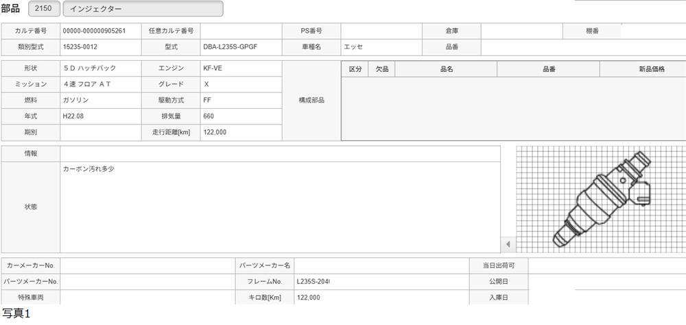 H22年 L235S エッセ インジェクター /送料 ミニ/905261 收藏