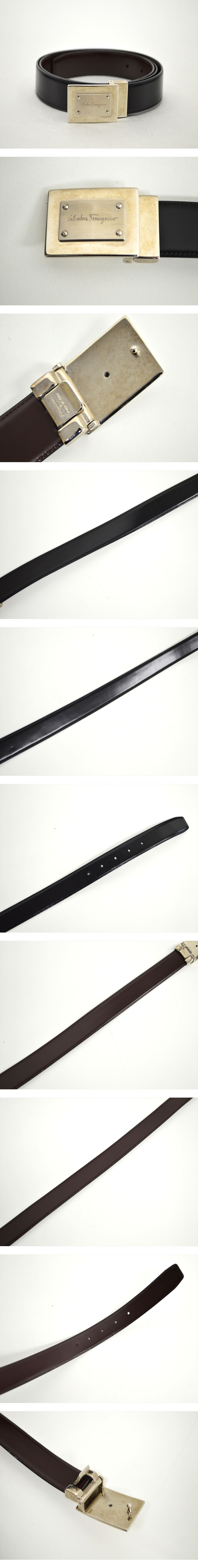 TE2●中古品●Salvatore Ferragamo フェラガモ レザーベルト ブラック×ブラウン リバーシブル メンズ 收藏