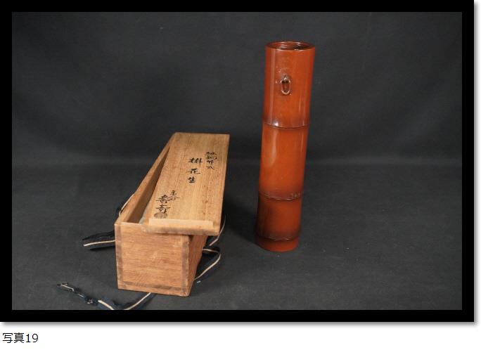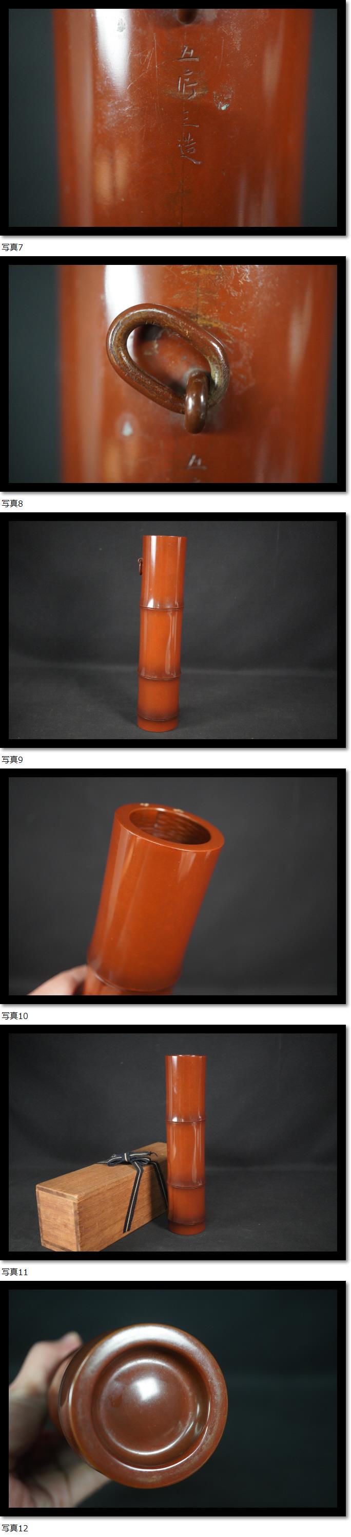 緋銅竹式 掛花生 金谷五郎三郎 花器 花筒 華道 高さ約25.8㎝ 生花 茶室 茶道具 金属工芸品 共箱 古美術 骨董 收藏
