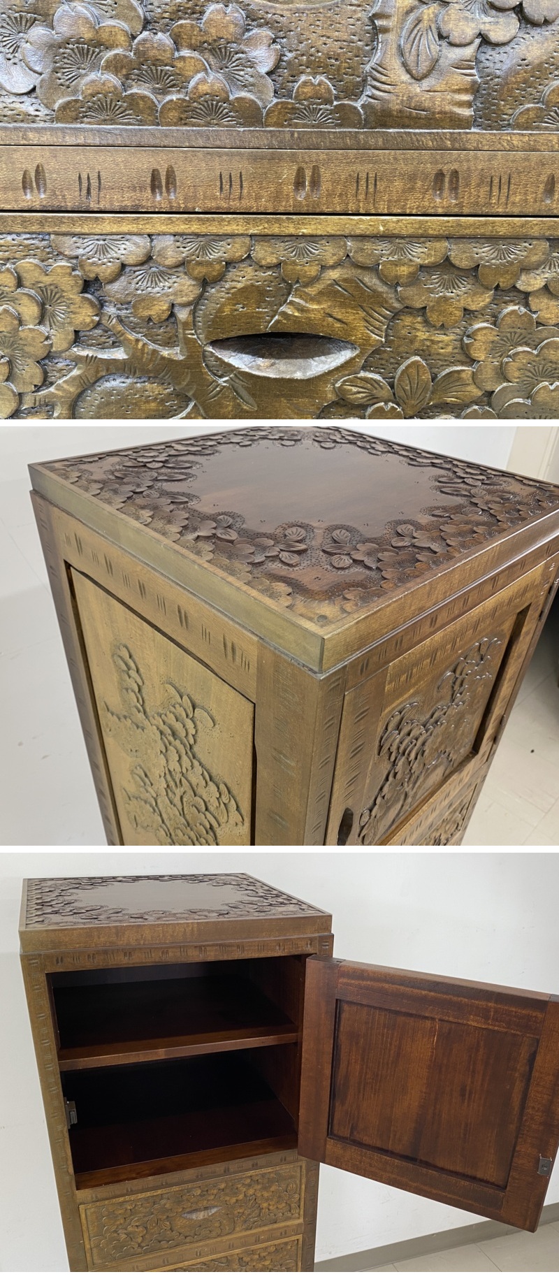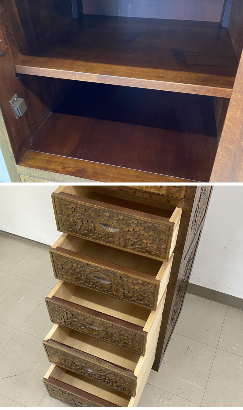 | ◇商品名◇ | i2084 伝統工芸 軽井沢彫 桜 彫刻 チェスト 収納棚 整理箪笥 引き出し 高さ約120cm | ||||||||||||