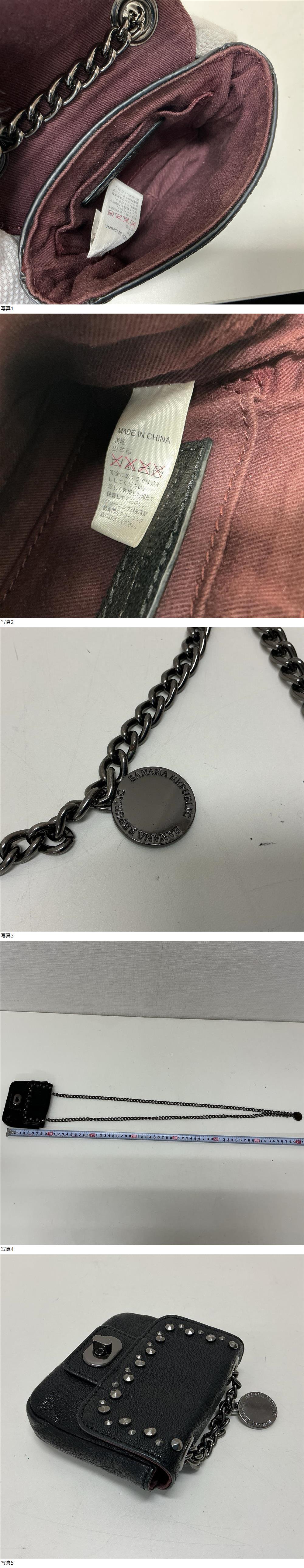■6938 BANANA REPUBLIC バナナパブリック チェーンショルダーバッグ ミニバッグ 山羊革 ブラック系 本体のみ レディース 收藏
