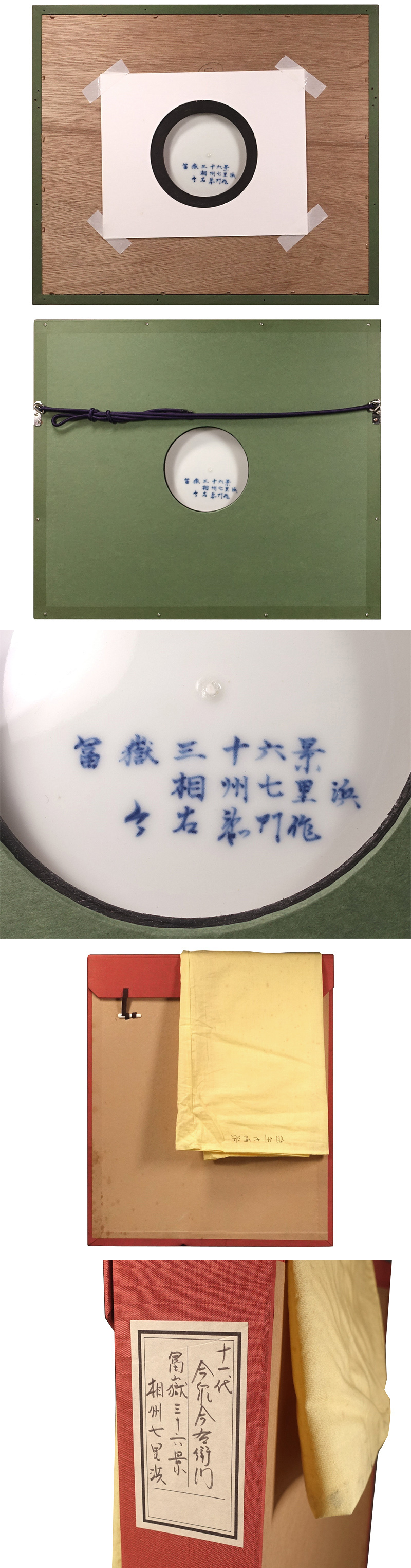 ∇花∇【十一代今泉今右衛門】希少作 北斎敬慕の色絵富嶽三十六景図皿「相州七里浜」 直径22cm 額装品 所載同手品 收藏