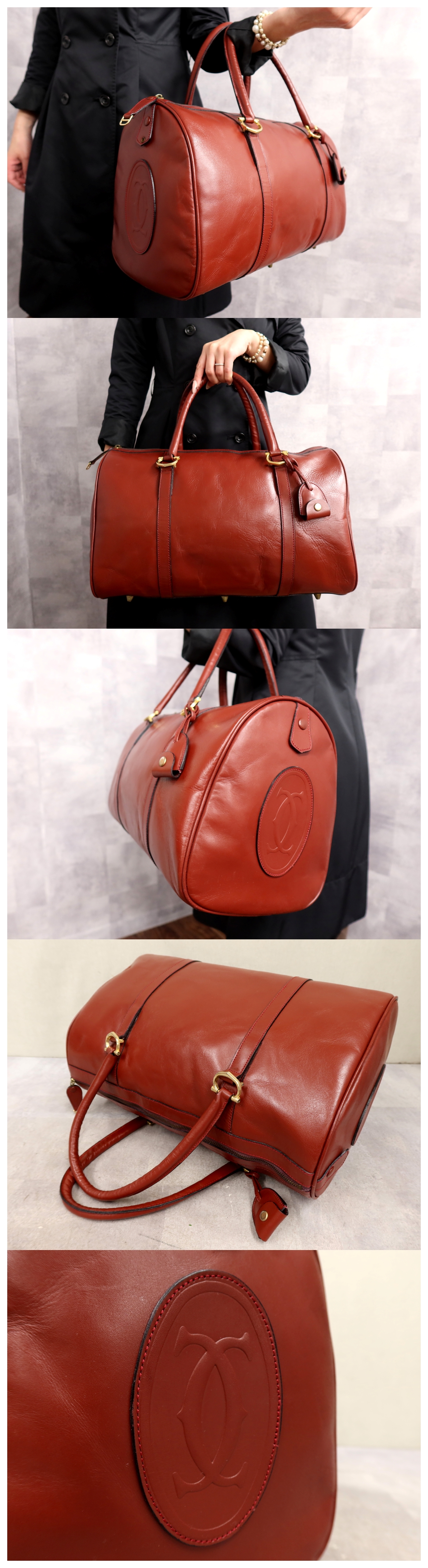 ●超美品●Cartier カルティエ●マスト●ロゴ型押し●カーフ レザー 本革●ボストン バッグ●ボルドー●ゴールド金具●腕掛け●Js65341 收藏