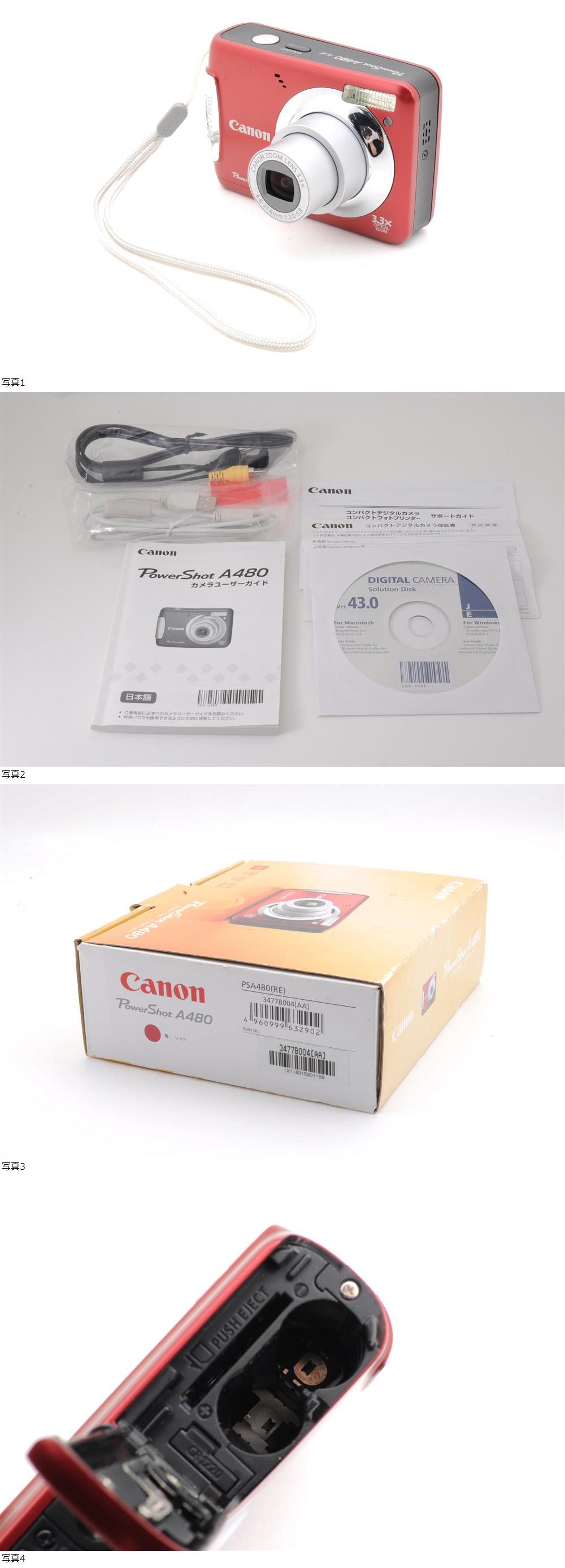 動作品 単三電池使用 キャノン Canon PowerShot A480 パワーショット 赤 レッド コンパクトデジタルカメラ 箱 取説付 管R478 收藏