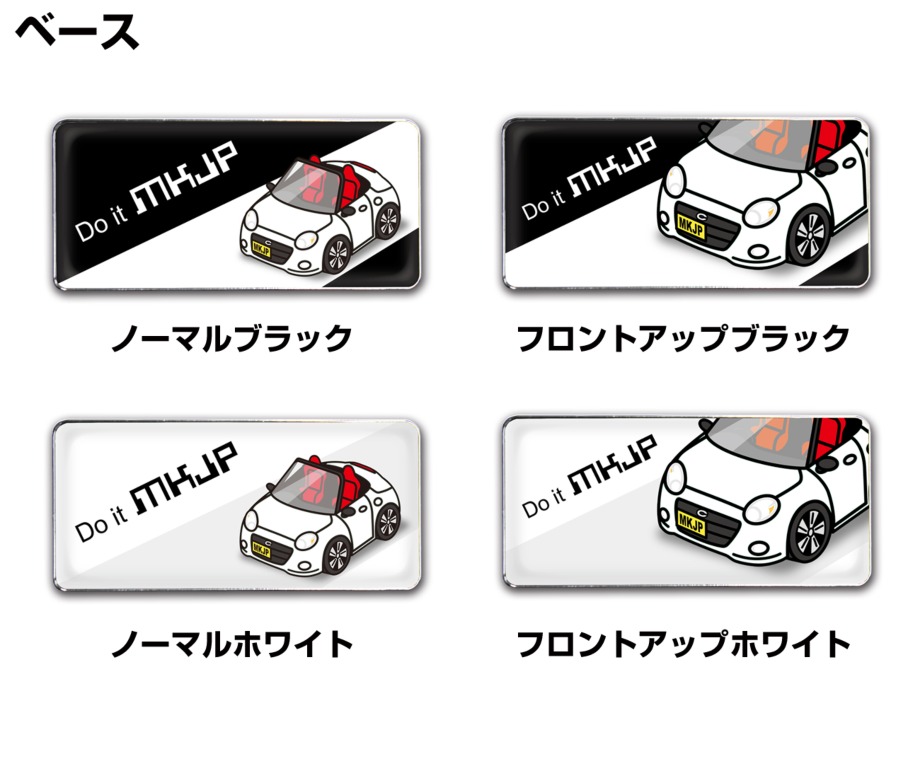 | 好きな車カラーが選択できます。車ボディカラーは16種類。【ホワイト/ブラック/グレー/ゴールド/水色/ピンク/パープル/グリーン/イエロー/ブルー/レッド/オレンジ/ワインレッド/ダークグリーン/グレー/ブラウン】の全16色から選択できます。エンブレムのベースは4種類。【ブラック/ホワイト/フロントアップブラック/フロントアップホワイト】をラインナップ。 オフ会やカーミーティング・各種カーイベントなどでは、まだ販売していない、愛車と同じデザイン・カラーのカーグッズです。カーミーティングに配布したり、ビンゴゲームの景品にしたりするなど、クラブミーティングでは他にない賞品となります。 フロントバンパーやピラー部分、ルーフ、ドア部分、ヘッドライトサイドミラー・シート・フロントガラスなどボディ細部までデザインしています。ボディーカラーは16色「ホワイト・ブラック・シルバー・ゴールド・水色・ピンク・パープル・グリーン・イエロー・ブルー・レッド・オレンジ」のラインナップとなっています。 車種は、人気車種から旧車まで幅広くラインナップ。【代表車種】トヨタ:プリウス・ヴェルファイア・コペンGR・ランドクルーザー・アクア ホンダ:N-BOX・S660・シビックタイプR・N-VAN・N-WGN マツダ:MAZDA3・デミオ・CX-5・ロードスター・RX-8 ミツビシ:ランサーエボリューション・パジェロ・アウトランダー・デリカ・アイ ニッサン:フェアレディZ・スカイライン・GT-R・ノート・セレナ スバル:インプレッサWRX・フォレスター・レヴォーグ・XV・BRZ スズキ:ラパン・ワゴンR・エブリィワゴン・スイフトスポーツ・ジムニー ダイハツ:ハイゼットトラック・コペン・ムーブ・ムーブキャンバス・タントカスタム 車種によっては、前期・後期共にラインナップしている場合があります。その場合は、商品名に記載されています。前期モデルのみのラインナップや後期モデルのみのラインナップなども場合もあります。 車両に取付けるエンブレムや、キーホルダー・スマホケースなども同シリーズでラインナップしています。【すべて受注生産です】 |