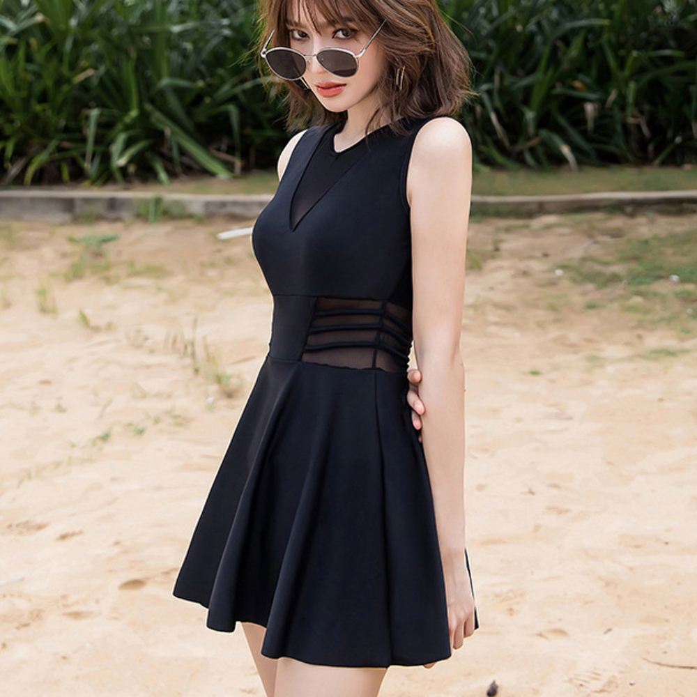 ☆ ブラック ☆ L ☆ ワンピース 水着 レディース ワンピース 水着 シースルー ワンピース水着 ノースリーブ フレアワンピース Vネック 收藏