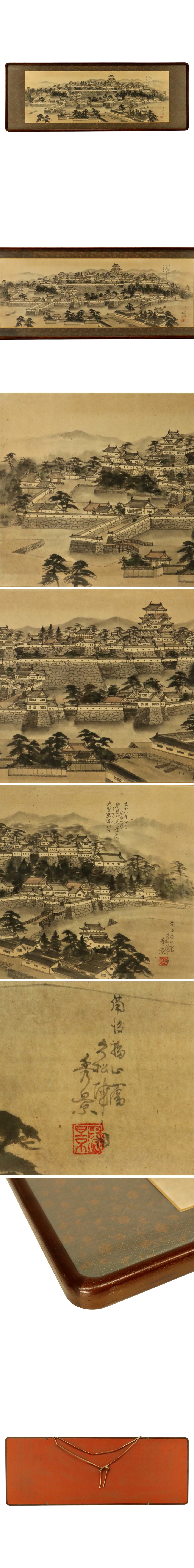 真作保証 亀山秀景「備後福山藩 久松城図」福山城 約34×97cm 扁額 備後 絵画 書画 骨董品 美術品 3015kezN 收藏
