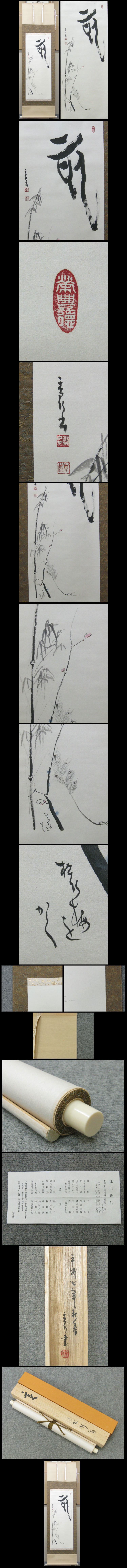 【江川 香竹】 名古屋市在住女流書家 日展会友 毎日展毎日賞、日本書芸院展特別賞他、多数受賞 ★商品サイズ★ ■掛軸 189×64cm ■作品 105×42cm ★商品の状態★ 作品・表具共にわずかな点しみがあります。 ご承知のうえご入札をお願いします。 時代など詳しくは画像にてよく確認のうえでご検討いただければと思います。 どうぞよろしくお願いいたします。 |