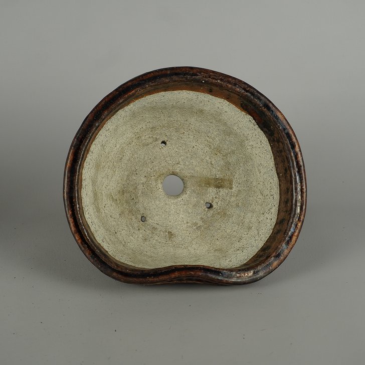 盆栽鉢 文山 越前文山 小型 長辺 約 18cm 鯖江園芸 変形 丸鉢 釉薬 現品 新品 收藏