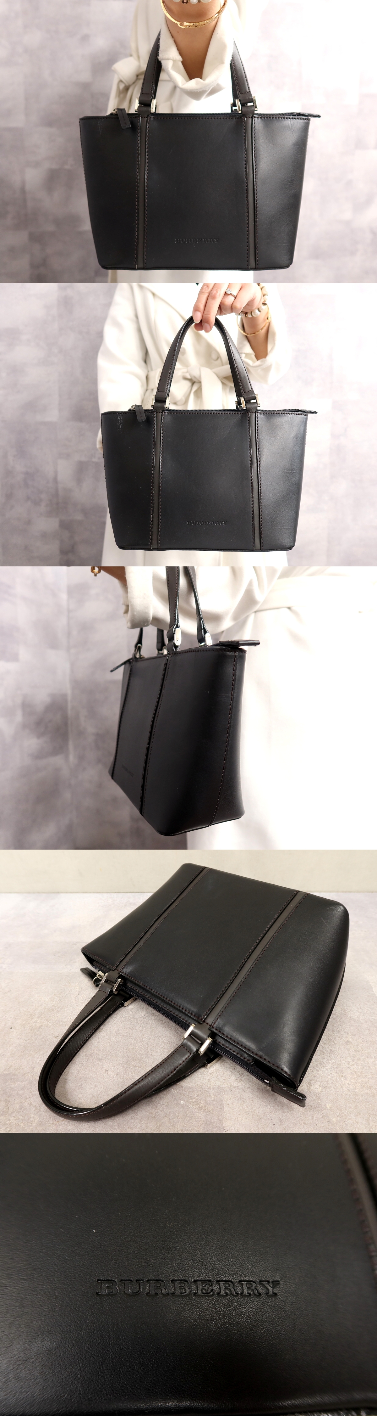 ●超美品●BURBERRY バーバリー●内ノバチェック●カーフ レザー 本革●トート ハンド バッグ●黒 グレー●シルバー金具●腕掛け●Js65769 收藏
