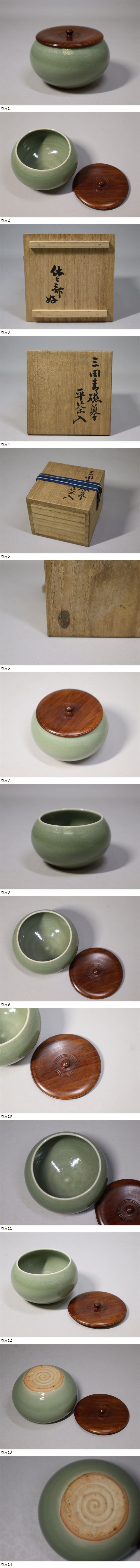 本物保証。藪内流十代休々斎好書付 三田青磁平茶入です。傷はないです。