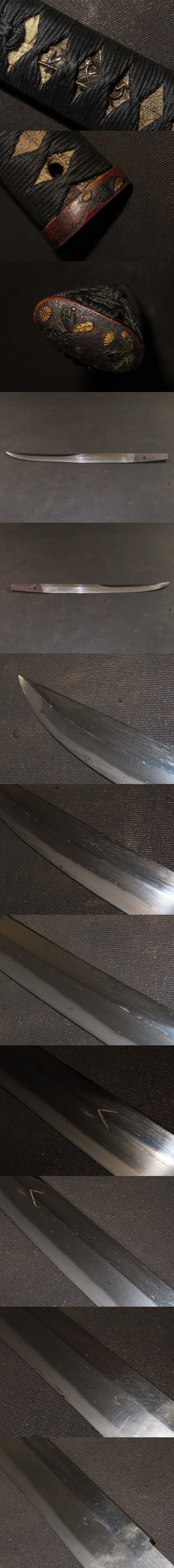 短刀 剣彫冠落造短刀 無銘 拵 室町 46×刀身28.5×反0.5×元幅2.4×先重0.45x先重0.3cm 400g 收藏