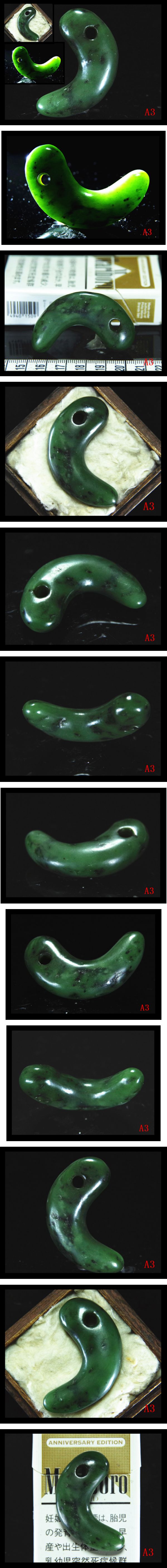 【A3】古墳期★透光性抜群表面肌艶良く濃緑色★上古玉製★極希少迫力特大コ字形勾玉★検★縄文出土器祭祀具法具仏像原石 收藏