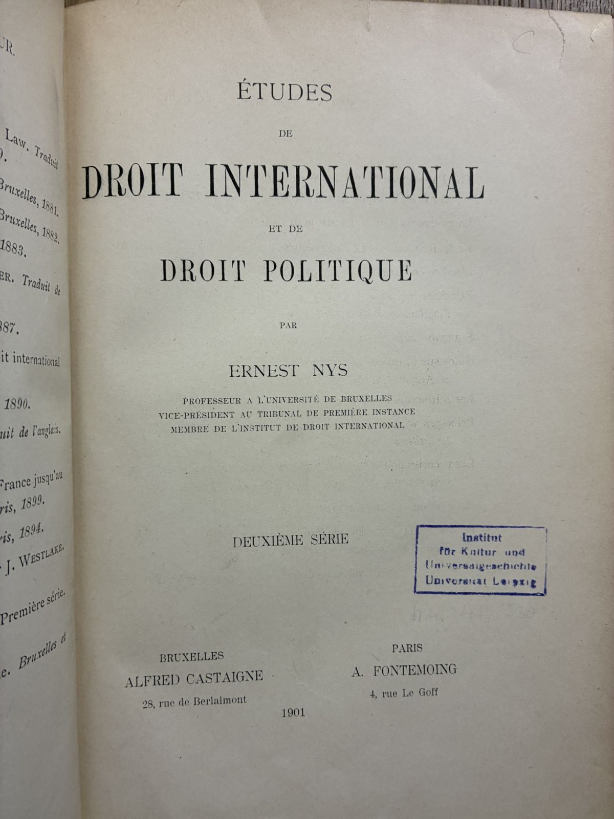 1901年 Ernest Nys 国際法研究 tudes de droit international 仏語 洋書古書 收藏