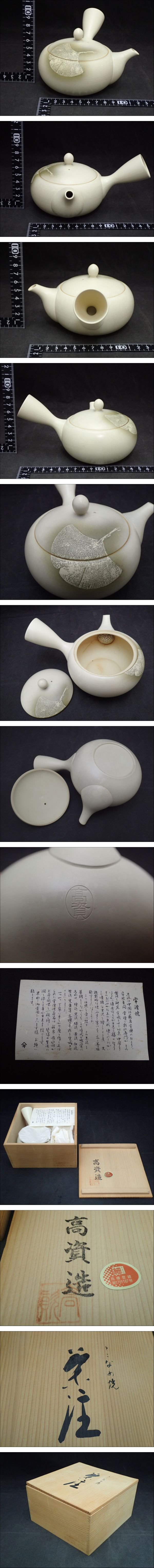 A36☆常滑焼 高資 造 白泥 銀杏図 急須 共箱 検) 煎茶道具 茶注 古玩 (60)