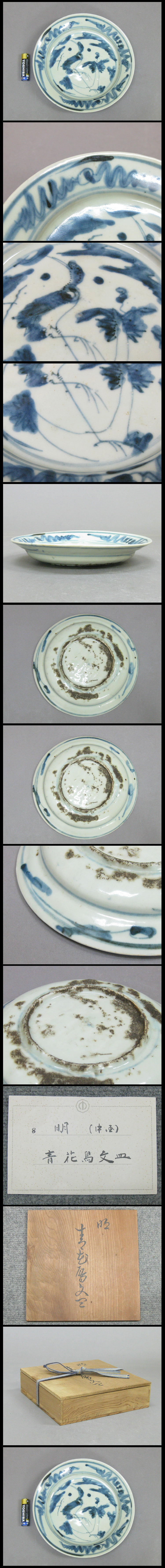 【心庵】中国 明時代 染付 青花鳥文/皿 直径17.7cm 付箱 B947 收藏