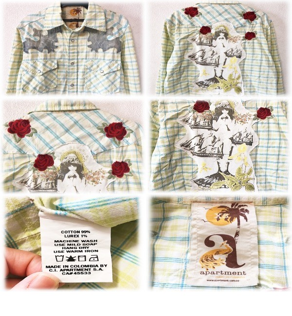 apartment アパートメント チェックシャツ 女の子デザイン バラ 刺繍 インポート LGB ロイヤルフラッシュ 美品 ¥20000 送料無料 M 最安値 收藏