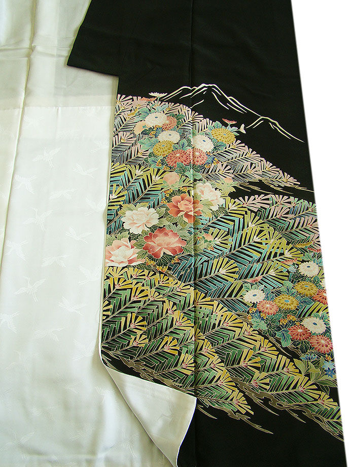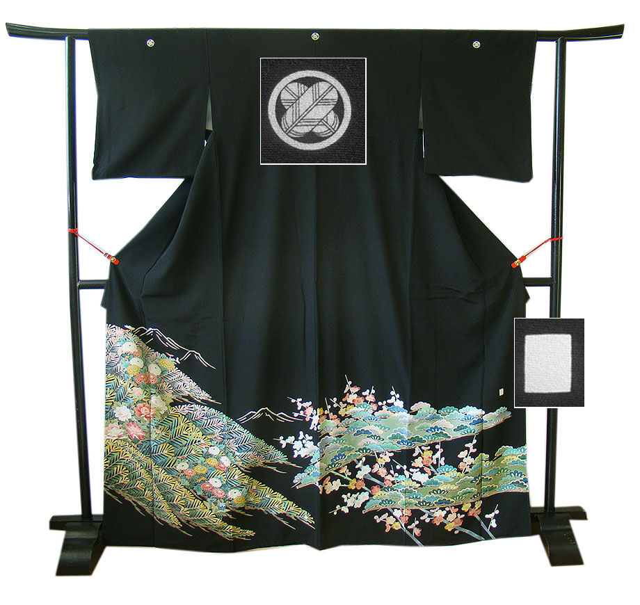 ※本加工染の黒留袖です。 新郎新婦のお母様や、お仲人さんにぴったりでしょう。 日本情緒の趣が匂いたち繊細に染成した脈々と受け継がれた色彩感覚が、 見る人を魅了する品物です。 40代~70代迄幅広く着用出来ます。 身長152cm~158cmの貴女に最適です。 |
