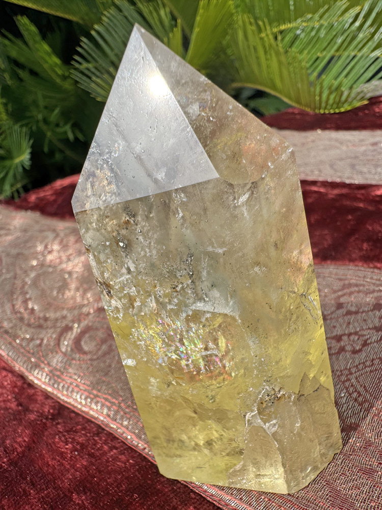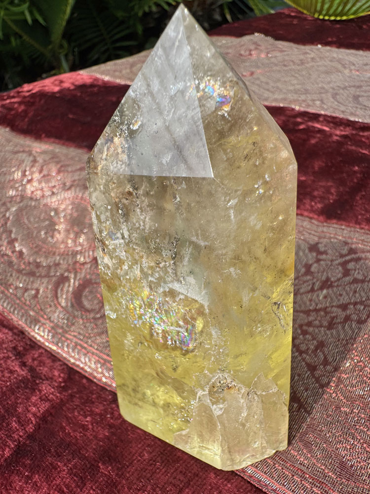 シトリン 黄水晶 六角柱 H9.5cm 送料無料 虹入り 内包物 ポイント パワーストーン 天然石 黄色 イエロー 鉱物 結晶 クラスター 柱 石 置物 收藏