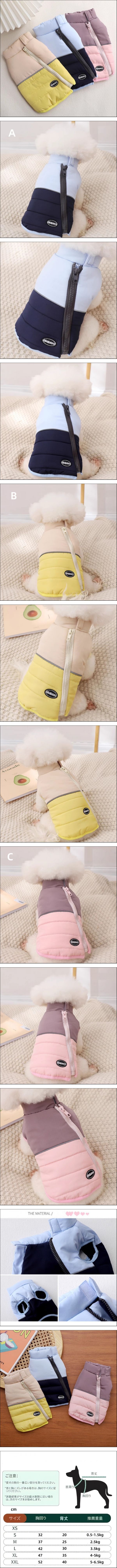 | 商品名 犬服 ペット服 ダウン風 ジャケット ベスト 秋冬用 保温 防寒 ファスナー 着脱簡単 あったか 小型犬 中型犬 ドッグウェア お散歩お出かけ服 商品コード:STdg305 スタイル: A、B、C サイズ:S、M、L、XL、XXL ※ご購入の際は、取引ナビより必ず商品 スタイル、サイズ をご指定下さい。 商品について ※ 海外製品の為、若干の縫製の荒さ、糸くず等が見受けられます。検品は行っておりますが、稀に見逃して発送してしまう場合が御座います。商品に著しく影響を与えない場合は返品対象とはなりませんので、予めご了承願います。 ※ 運送や配送等で、表面に若干のスレや汚れ、キズがある場合がございますが、ご利用には支障がないかと思いますので、予めご了承お願いします。 ※ PC・環境・光の具合等により、色のイメージが画像と若干異なる場合が御座います。 ※ 平置き採寸となりますので、多少の誤差についてはご容赦下さい。 返品について ※ 不良品以外は交換、返品はできません。 犬服については衛生上の問題で、ワンちゃんに一度でも着せた洋服は返品、交換することができません。予めご了承ください。 | |||