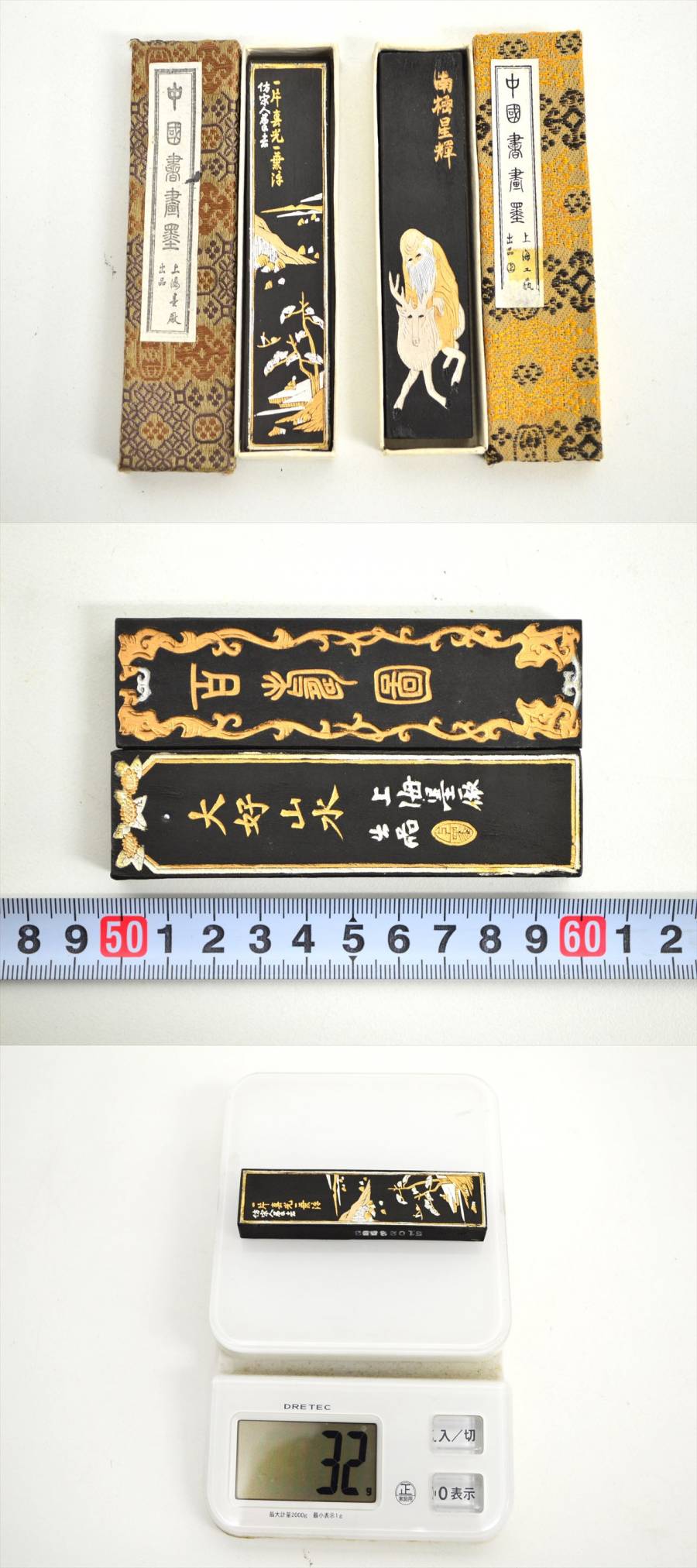 KM719●未使用保管品!!●古墨 中国書画墨/中国墨 大好山水 油煙101・百壽園 南極星輝 油煙102 2点セット 約32g 書道具 收藏