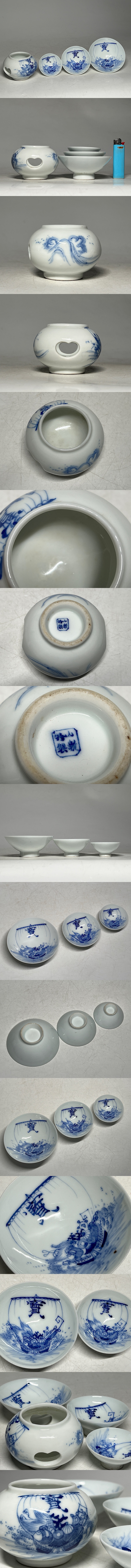 山新特製 染付 宝船文 三組盃 + 盃台 セット ◆商品詳細 寸法(約):盃:4.1x9.8(高×幅cm) 3.5x7.6(高×幅cm) 2.8x5.9(高×幅cm) 盃台:6x7.7x5(高×幅×口径cm) ※寸法に若干の誤差が生じる場合もございます。 盃1点に窯傷が有ります。 汚れがありますので、 ご承知の上入札お願いします。 状態等画像にてご確認の上ご入札よろしくお願いいたします。 ◆発送先等のご連絡とお支払いについて ※発送先等のご連絡 落札時から48時間以内にお願い致します。 ※お支払 かんたん決済の期限内にお願い致します。 複数点落札時にまとめて取引の場合(72時間内)に、 まとめて取引の取引手順(落札者方の操作)を参考にお願い致します。 梱包したサイズを測って、地方によって送料を決めますので、よろしくお願いします。 ◆掲載画像について ※画像は現物を撮影しておりますが、照度、遮光、モニターによっては実物と 色目が異なって見えることがありますのでご注意ください。掲載画像では確認 できない傷や汚れがある可能性もございます、あくまで 中古品であるということをご承知の上、御入札をお願い致します。 ◆補償について 商品到着後はすぐに状態の確認をお願い致します。 商品の破損等がございまし たら、箱や梱包材など全てそのままの状態で保存し、お早めにご連絡ください。 (到着日から一週間以上経過、梱包材の廃棄済み等の場合、保証は致しかねます のでご注意ください。) ◆返品について 思っていたイメージと違う、などのお客様主観による返品はお受けできません ので、予めご了承ください。ノークレーム、ノーリターンでお願いします。届 いた商品が商品説明と著しく異なる場合(寸法、キズ記載ミスなど)のみ承り ます。早めにご連絡ください。 ◆注意事項 当方の希望価格と隔たりがある場合は、終了前にやむなく取下げさせて頂く場 合がございます。 ※商品ご落札翌日から4日間以内にご連絡が取れない場合は、入札取消の処置を 取らさせていただく場合がございます。 ※評価の悪い方は取り消す場合がございます。 ※原則として当方の不備以外のキャンセル・返品・返金は受け付けておりません。 以上の点を予めご了承頂いた上で、入札・落札お願い致します。 ◆発送方法 ▼ゆうパック(補償あり/追跡あり) 梱包後のサイズ:~約60cm ※送料全国一律880円 (但し北海道、沖縄、離島は+500円いただきます。) 発送元は静岡県となります。 ( 商品の組み合わせによっては同梱をお断りさせていただく場合があります。) ※大型商品について 郵便局の規定を超える商品の場合は、佐川急便またはヤマトでの発送となります。 |