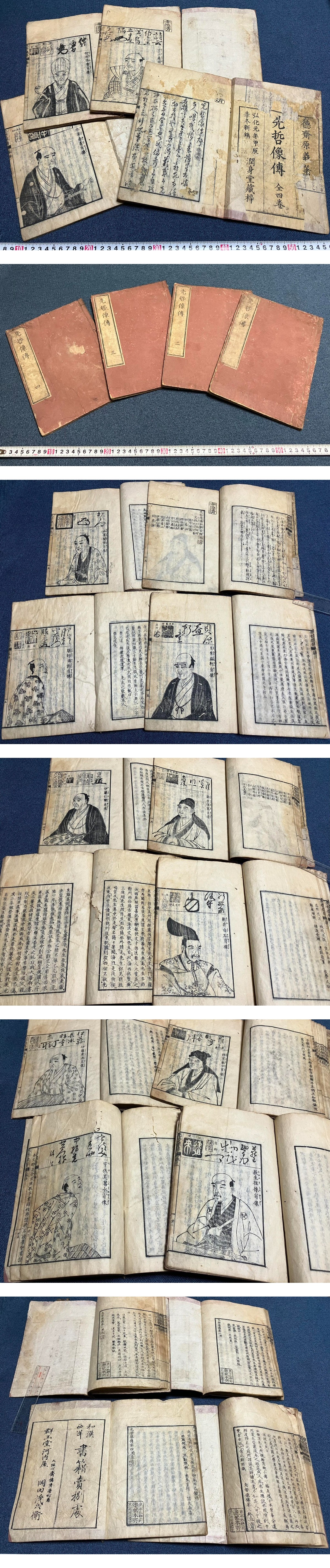 ★『先哲像傳』全4冊 弘化元年 徳斎原義 潤身堂 林羅山 伊藤仁斎 貝原益軒 新井白石 荻生徂徠 等 肖像画入り☆彡江戸 和本(和150) 收藏