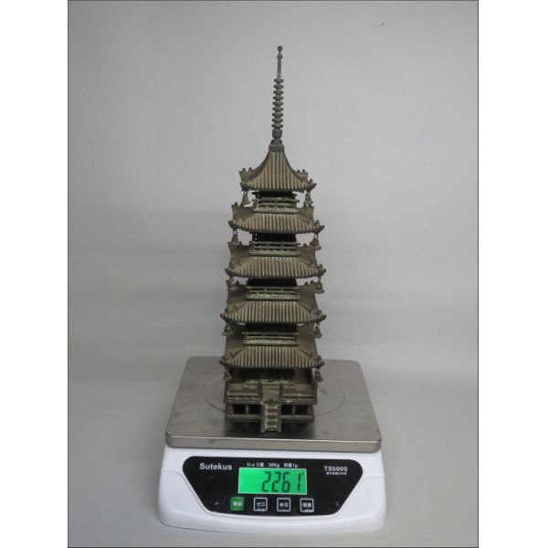 | 「コレクター所蔵品」◆銅製 五重の塔 H36.2cm (徳川家臣大林刑部家伝来) 五重塔 置物 仏教美術 | ||