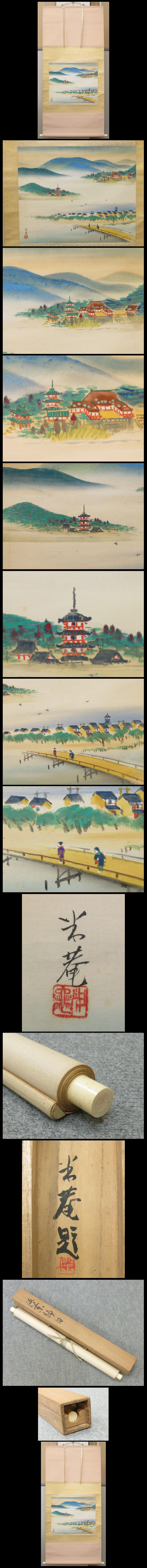 【里見米菴】1898-1993 明治31年富山県射水郡小杉町(現在の射水市)生まれ。 大正2年上京して鈴木赤城の内弟子となり井澤蘇水らに師事。 大正7年兵役のため帰郷。大正12年京都市立絵画専門学校に入学。 また、土田麦僊の山南塾に入塾した。 昭和2年京都絵画専門学校卒業、 昭和7年同校研究科修了。 昭和9年第15回帝展に初入選。 昭和17年第29回院展に初入選し、その後も院展に出品を続け、 昭和50年特待に推挙された。 昭和25年からは郷倉千靱に師事した。平成5年、95歳で死去した。 ★商品サイズ★ ■掛軸 138×65cm ■作品 42×51cm ★商品の状態★ 作品・表具共に時代のしみ汚れがあります。 箱に欠損があります。 ご承知のうえご入札をお願いします。 時代など詳しくは画像にてよく確認のうえでご検討いただければと思います。 どうぞよろしくお願いいたします。 |
