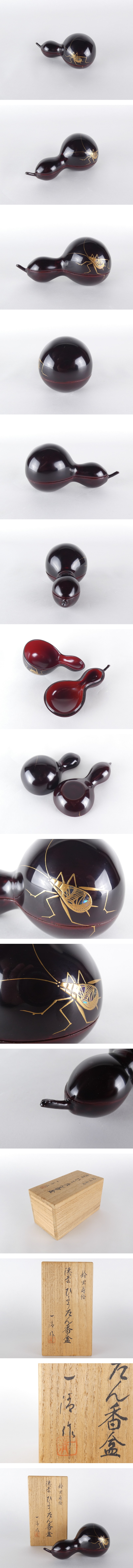 【都屋】北浜一清「鈴虫蒔絵 漆芸 ひょうたん香合」共箱 茶道具 輪島塗 K177 收藏