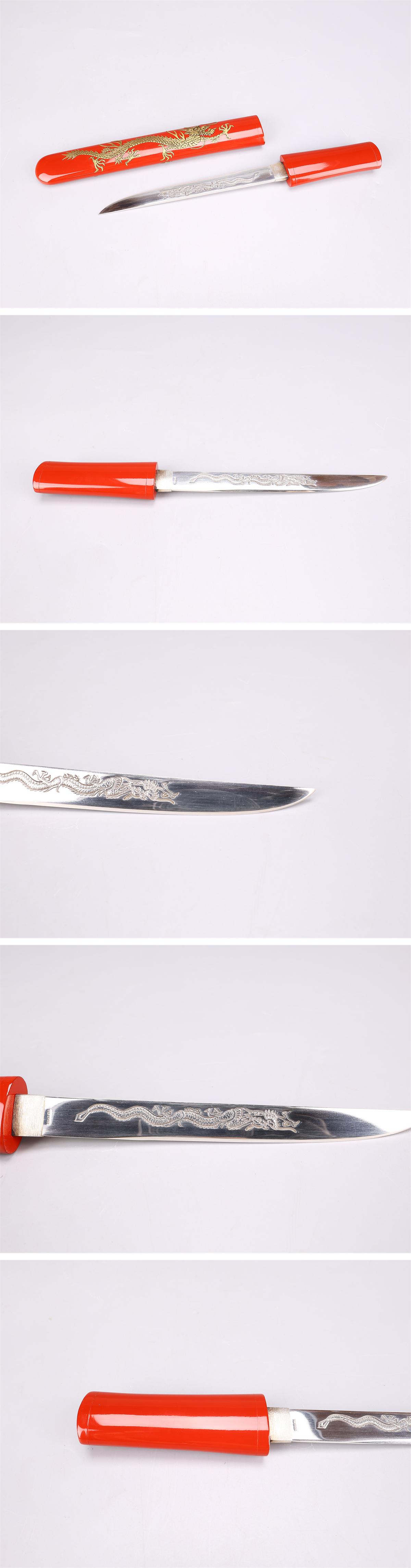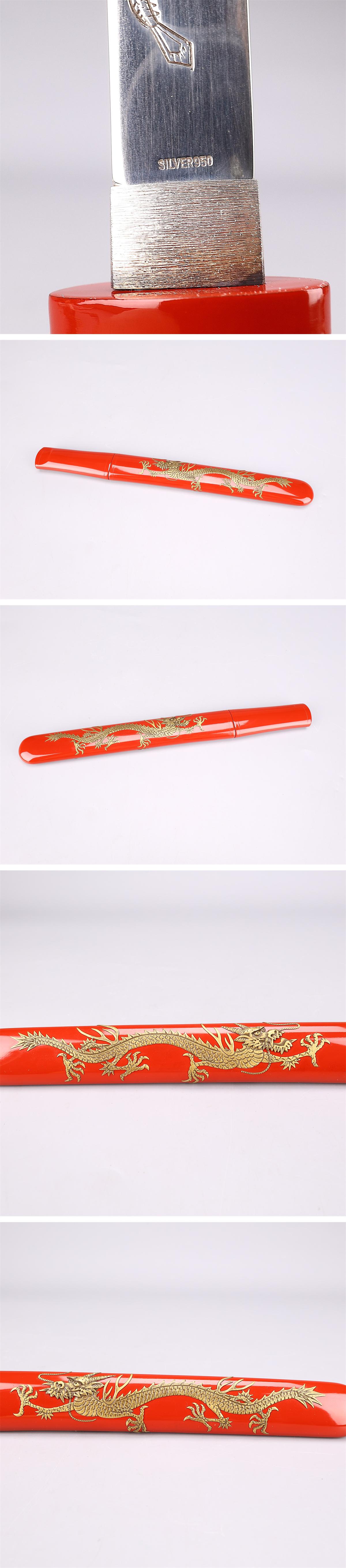 【吉】WB633 模造刀 【銀製】 SILVER950 短刀 全長27㎝ 総重量98g 抜刀重68g 龍紋象嵌赤鞘 箱付 美品G! 收藏