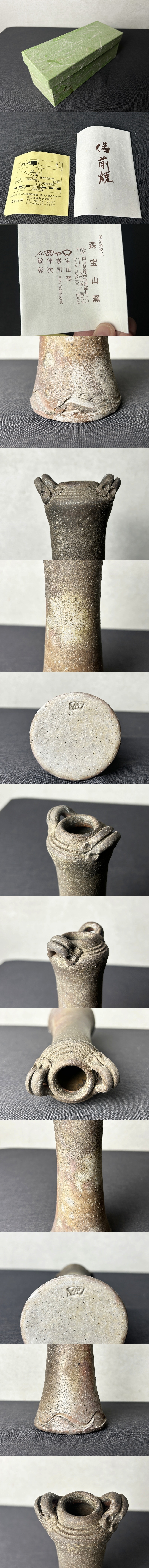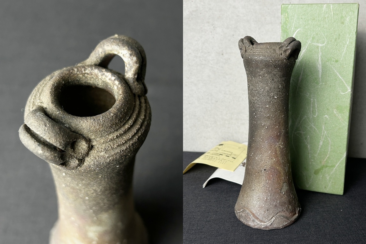 備前焼 森宝山窯 伸次 一輪挿し 耳付花入◇花器/花瓶/花生/置物/窯変/焼物/飾り物/壷/壺/陶芸/民藝/工芸/時代/骨董/古美術 收藏