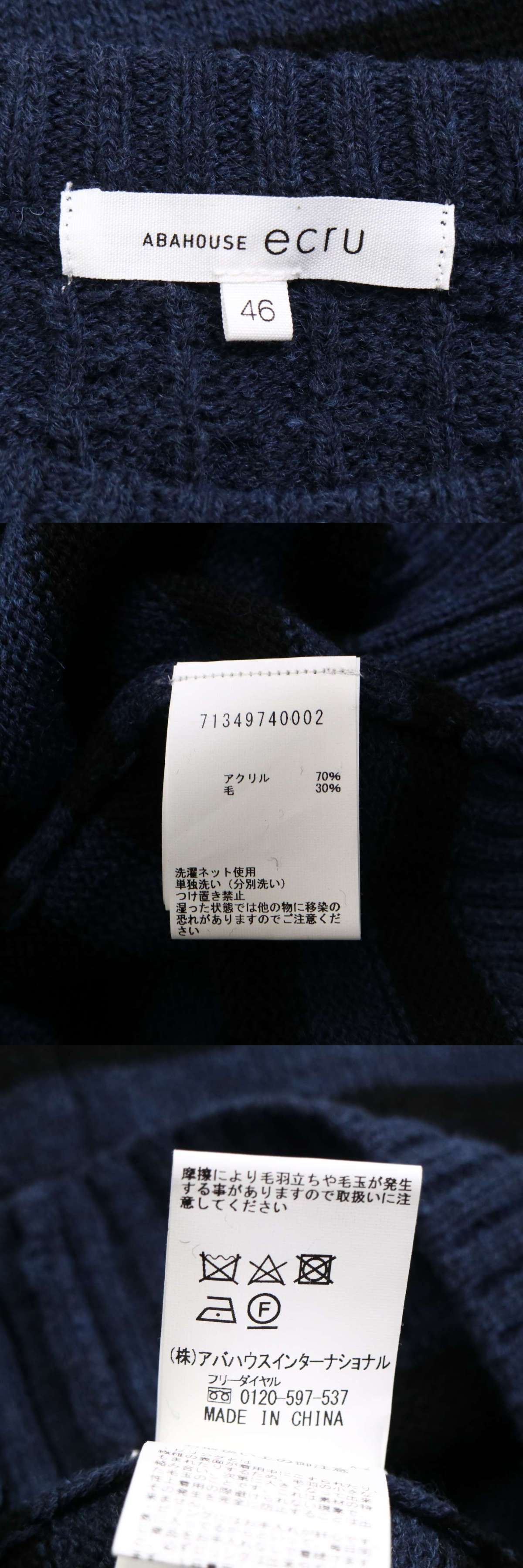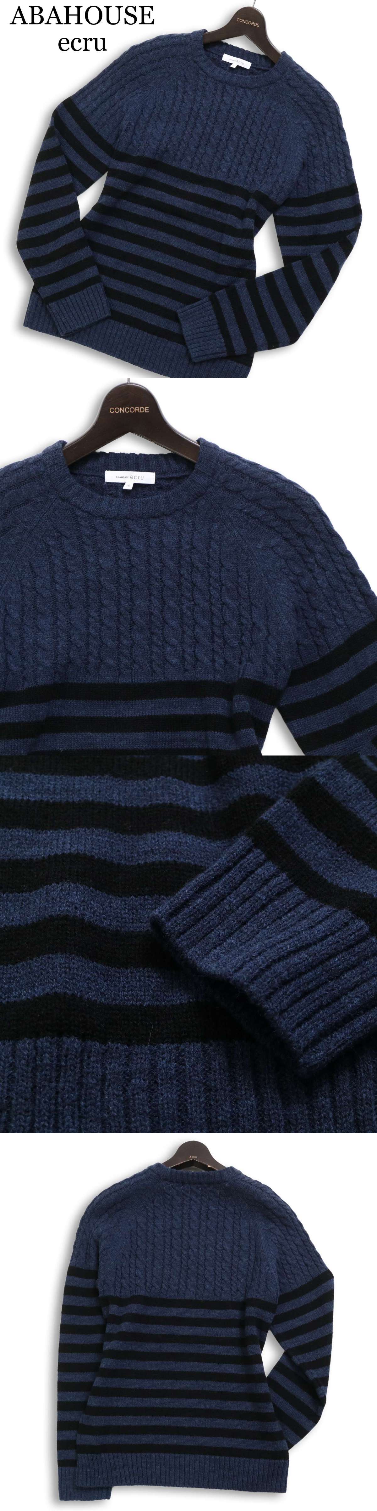 ABAHOUSE ecru アバハウス エクリュ 秋冬 ウール混★ ケーブル ボーダー セーター ニット Sz.46 メンズ 紺 ネイビー 收藏