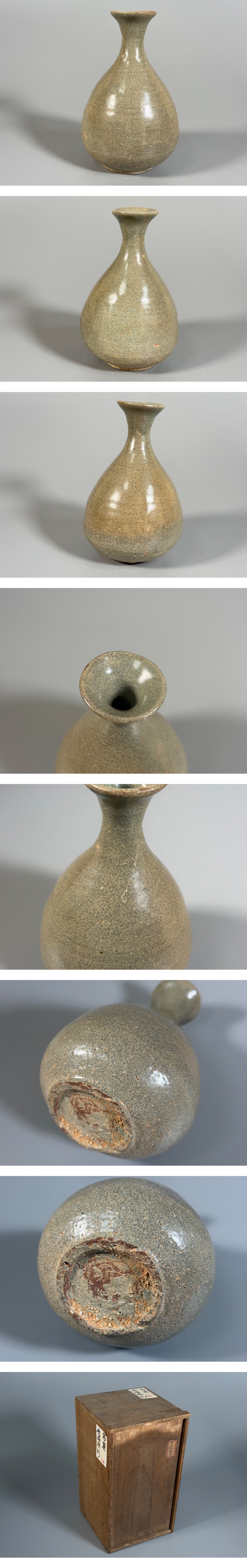 【小】5500 朝鮮古美術 高麗期〜李朝初期 高麗青磁徳利 酒器 花生 時代箱伝世有 李朝 時代物 骨董品 收藏