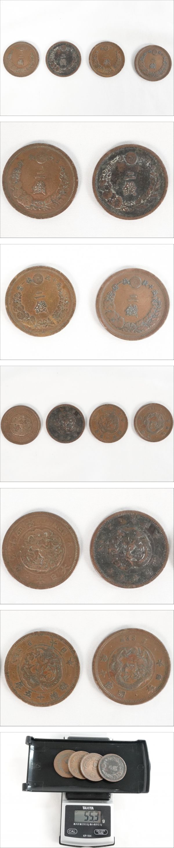 二銭 4枚まとめ 約55.3g 銅貨 貨幣 大日本 昭和 当時物 旧貨幣 まとめ売り | |||