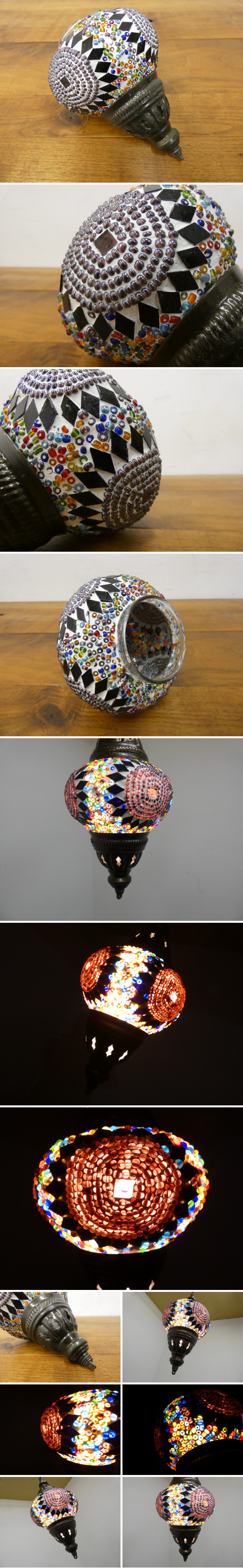 ◆RN251◆美品◆トルコランプ◆ハンドメイド◆モザイクガラス◆ペンダントライト◆シェードのみ◆照明◆直径13cm◆幾何学模様 吊り下げ照明 收藏