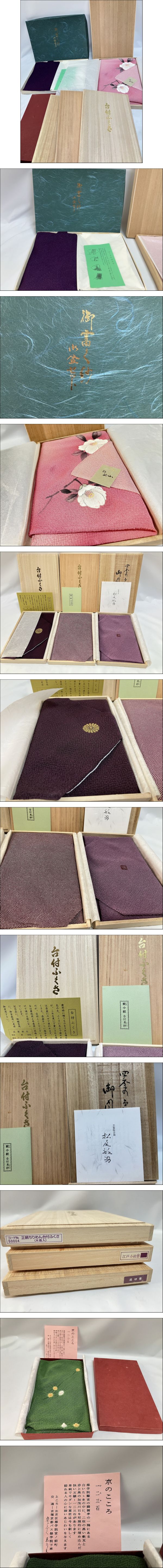 | 商品説明 | 10枚以上の写真を撮影しております。[商品詳細をみる]をタップしていただき、詳しく撮影した写真をご確認ください ふくさと風呂敷のまとめてセットです。 未使用のまま自宅にて保管していたものとなります。 写真にて状態をよくご確認いただき、現状品渡しにご理解の上入札をお願いいたします。 ■ 注意事項 落札前に必ずこちらをご確認ください。 当店の商品を落札された場合、こちらの「注意事項」に同意いただいた事とさせていただきます。 オークション終了後の返信は原則3日以内、入金は5日以内にお願い致します。もし全くご連絡がなく、この期間を守っていただけない場合は、「落札者様都合で削除」とさせていただきますのでご注意ください。 ■お客様都合による、商品の返品および交換は承っておりません。 ■中古商品は一点ものです。交換・サイズ変更などはできません。 ■開封済みのものは、汚れやシミがあるモノがございます。写真をご覧の上、ご判断下さい。 ■お客様のお使いになられているモニターや端末等によって、色が異なって表示される場合がございます。 ■素人による検品となり、細かい点での見落とし、製品について勘違いなどがある場合がございます。基本的に写真の状態での現状品でのお渡しになりますので気になる点がある方は、必ずご質問下さい。 付属品の状態、写真に写っていない部分や・説明文に記載されていない付属品や傷・汚れ等の有無につきましては、免責事項とさせていただきますので、ご了承ください。 ■掲載写真や説明と、説明欄の写真や説明が違う場合があります。こちらが記載ミスをしてしまう可能性もありますので、タイトルと写真・説明におかしい点があれば質問などで確認をいただけると助かります。 ■状態を極度に気になさる方、神経質な方はご入札をお控え下さい。 ■ご質問などございましたら、答えられる範囲内でお答えいたしますが、専門的で分からない質問にはお答え出来かねる場合がございます。 ■当商品は買取による中古品となります。 ■ブランド品の真贋に関しては、お客様の判断による返品は、お受け致しかねます。正規店にてご確認いただき、取り扱い不可の際は全額返金致しますので、確認をいただいた店舗名など詳細をお知らせください。 ■商品タイトル・説明欄に『ジャンク/現状品』記載のある商品は基本的に動作の確認をしておらず、故障や不備等によるご返品をお受け出来ません。 動作の確認をしているものも、数秒~1分程度の確認となりますので、長時間の使用による不備等がある可能性があります。現状品と記載がある商品は動作の確認事項も再現性がない可能性があることをご理解の程よろしくお願いいたします。 ■ご返金は、商品をご返送いただいた後、状況の確認等が終わり次第、ご指定の銀行口座へのお振込となります。※不備の確認が出来ない場合は、送料お客様ご負担にて再度発送致します。 ■発送に関して、基本的に入金後1~2日程度で発送予定ですが、お休みをいただく場合があります。お急ぎの方は出品リストページの上部にある自己紹介に休みの期間を記載していますので、念のためそちらをご確認ください。 ■誠に残念ではありますが、新規および評価の悪い方の入札はトラブルが多いため、当方の判断にて削除させて頂く場合がございます。但し、これらの方の中で、購入の意思が強い方は、その理由とともに質問欄よりお伝えくだされば、入札をお受けする場合もあります。 トラブル回避の方策故、以上ご理解ください。 |