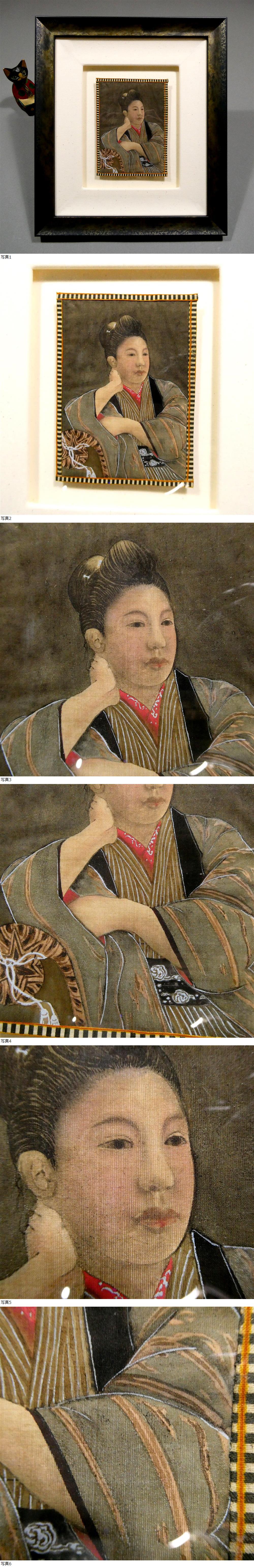 明治時代 写真絵◆洋画黎明期 油彩画 布絵 布に油彩 額装◆少女のポートレイト肖像◆横浜絵古写真 美人画 上野彦馬 下岡蓮杖 五姓田芳柳 48 收藏