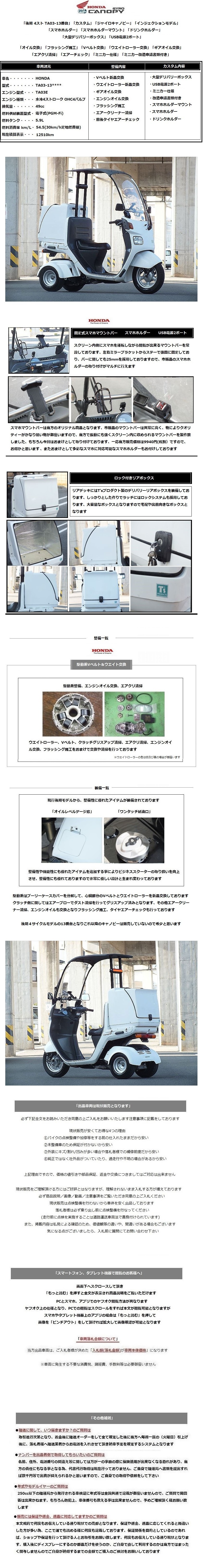 「後期 TA03-13番台」「ミニカー」「ジャイロキャノピー 4スト大型ボックス&スマホホルダー&USB2ポート電源&Vベルト&ウエイト&オイル交換」 收藏