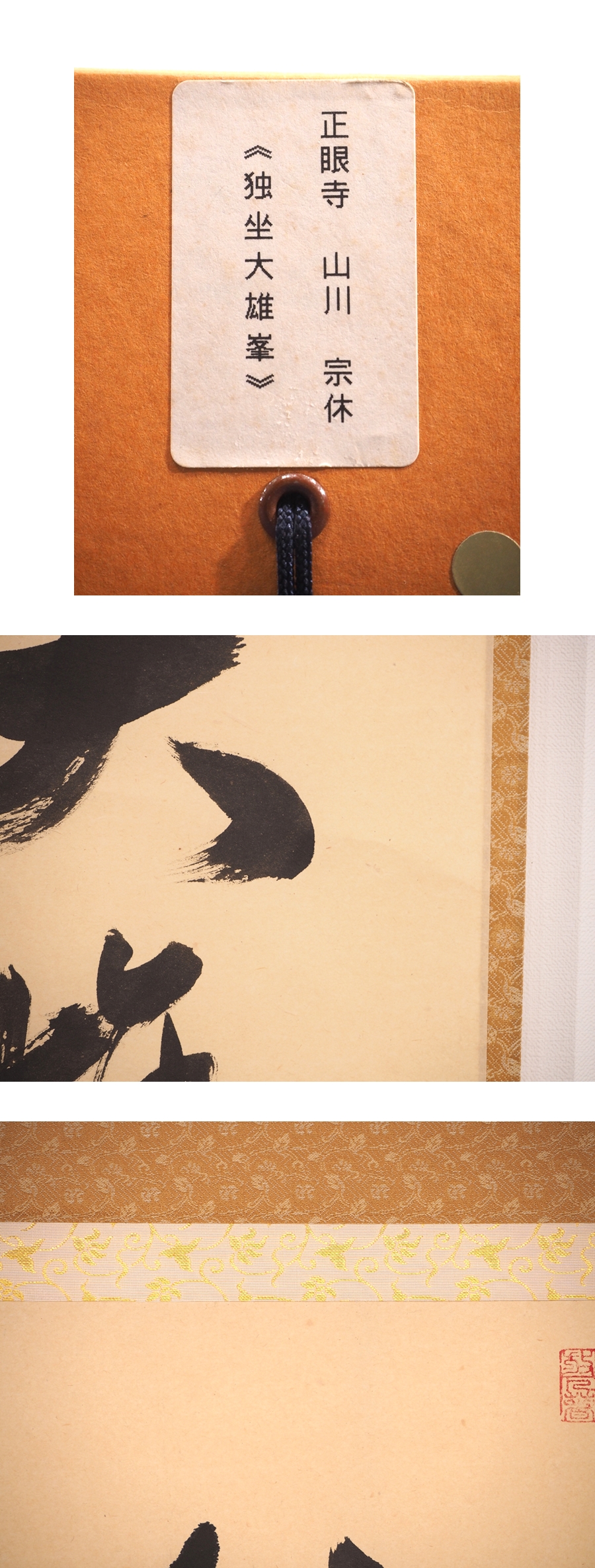 【真筆】【渡鹿庵】[山川宗休] 20940 掛軸 一行書 「独坐大雄峯」 共箱 紙本 臨済宗 妙心寺 正眼寺 在銘 收藏