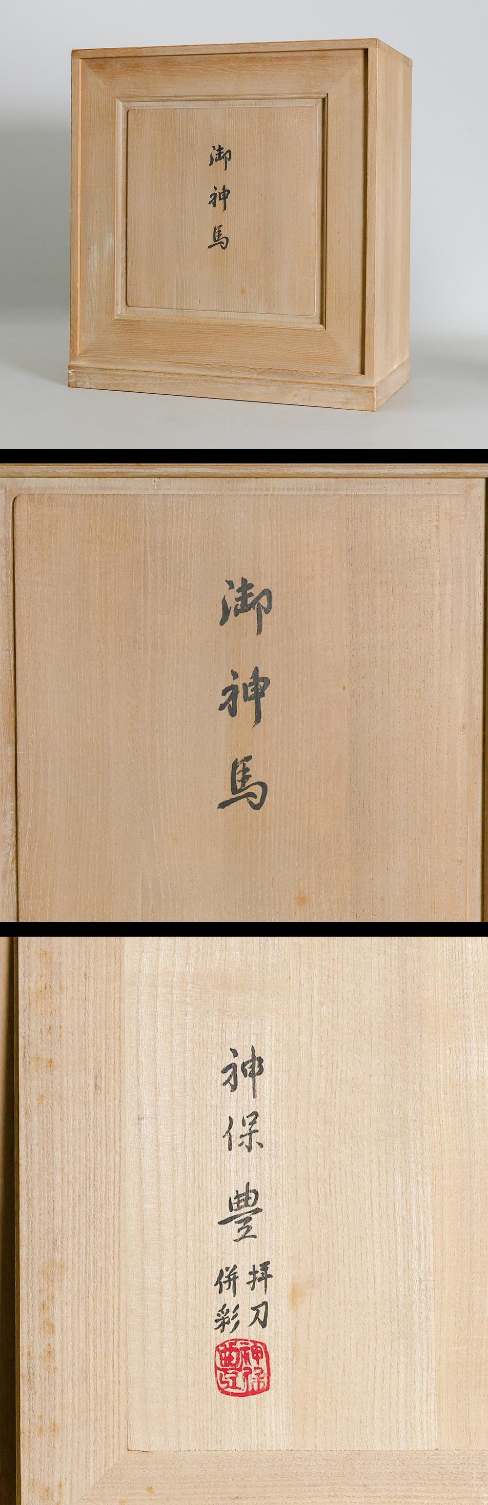 【真作】【WISH】神保豊「彩色木彫 御神馬」 木彫 共箱 高さ30cm 金彩 刻銘 ◆御新馬名品〇木彫巨匠 師:高橋丈雲 文部大臣賞 #26016024 收藏