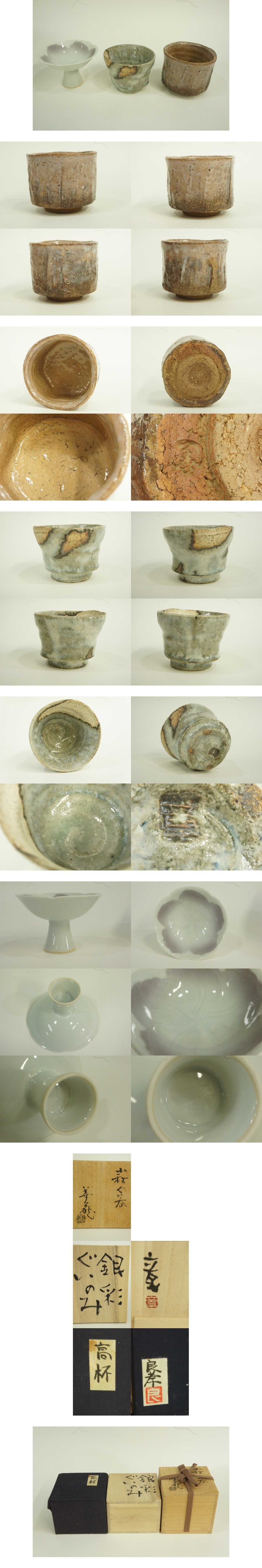 萩・益子・京都陶芸界のベテラン陶芸家三名によるぐい呑3点セットです。