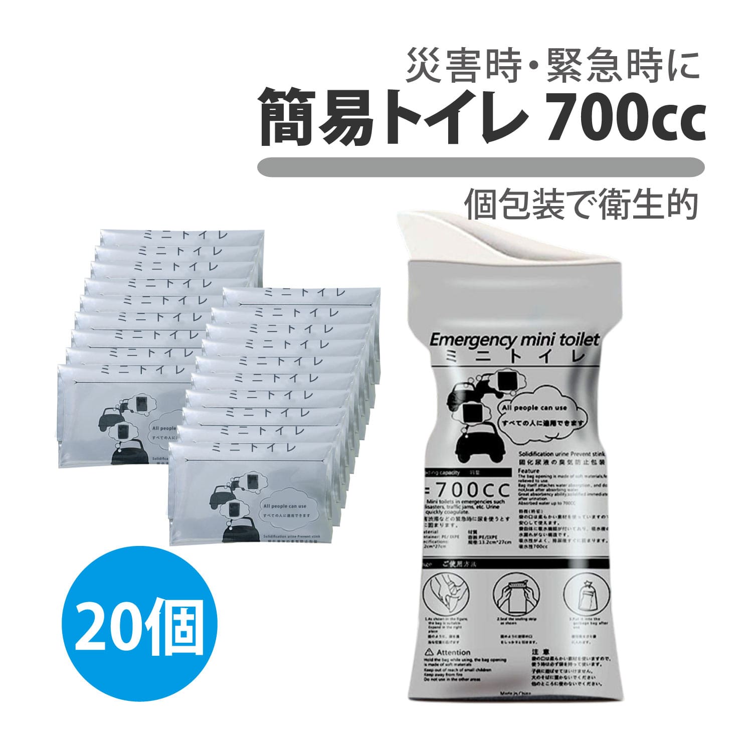 簡易トイレ 700cc 20個セット 非常用トイレ 携帯用トイレ 車 非常用 防災グッズ 防災 災害 車酔い レジャー トイレ 持ち歩き 大容量 收藏