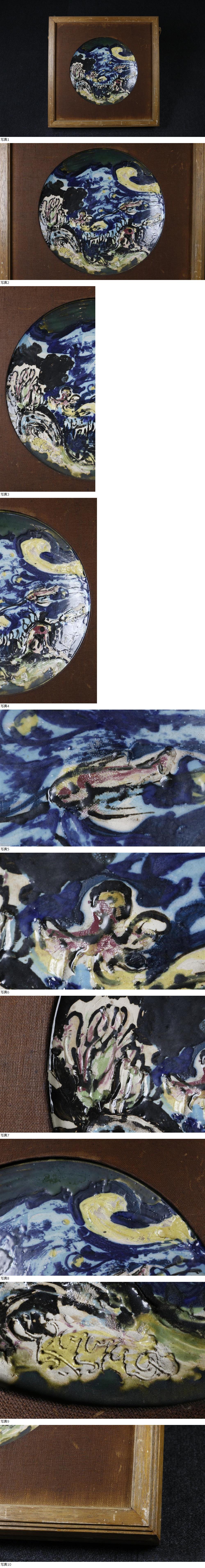 【LIG】時代名品 作家物 陶器 絵皿 陶額 飾皿 抽象画 額装 コレクター収蔵品 2602.228 收藏